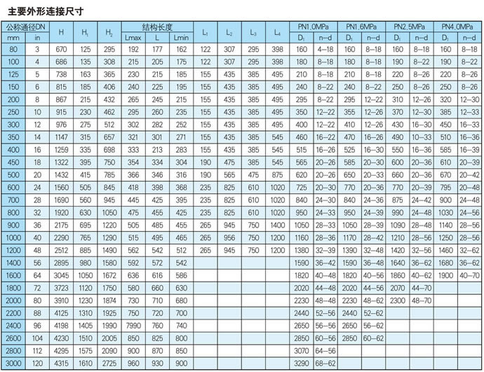 注.1、法蘭連接尺寸按GB115-88、GB12380-89, 2、閥門結構長度按GBl2221-89。 3、手動、氣動傳動裝置可按用戶要求配置. 4、公稱壓力按用戶要求制造。