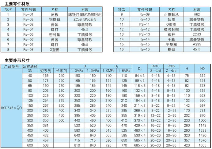注:如需電動較密封閘閥型號為RSDZ45x10/16Q