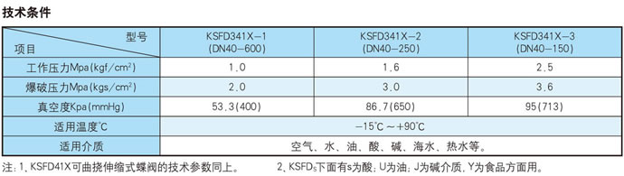 注:1.此表法蘭按《全國通用給排水標(biāo)準(zhǔn)圖集》有關(guān)標(biāo)準(zhǔn)制造工作壓力為1.0MPa。 2.閥門兩端有固定支撐或固定托架 固定支撐或固定托架的力大于軸向力,否則應(yīng)安裝防拉脫裝置。 3.用戶使用該閥門對應(yīng)法蘭應(yīng)是小口徑法蘭或符合GB/T9115.1(RF}法蘭。 4.KSFD,DSD分別為化工方面,給水方面用。